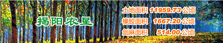 廣東省揭陽農墾集團有限公司(農墾局)下轄6個農場有限公司。墾區(qū)管轄26個代管村,現有總人口5.11萬人,墾區(qū)土地面積17.77萬畝,目前種植天然橡膠3.13萬畝,水果 2.57萬畝,光伏農業(yè)0.8萬畝,并探索發(fā)展一批特色產業(yè)等。